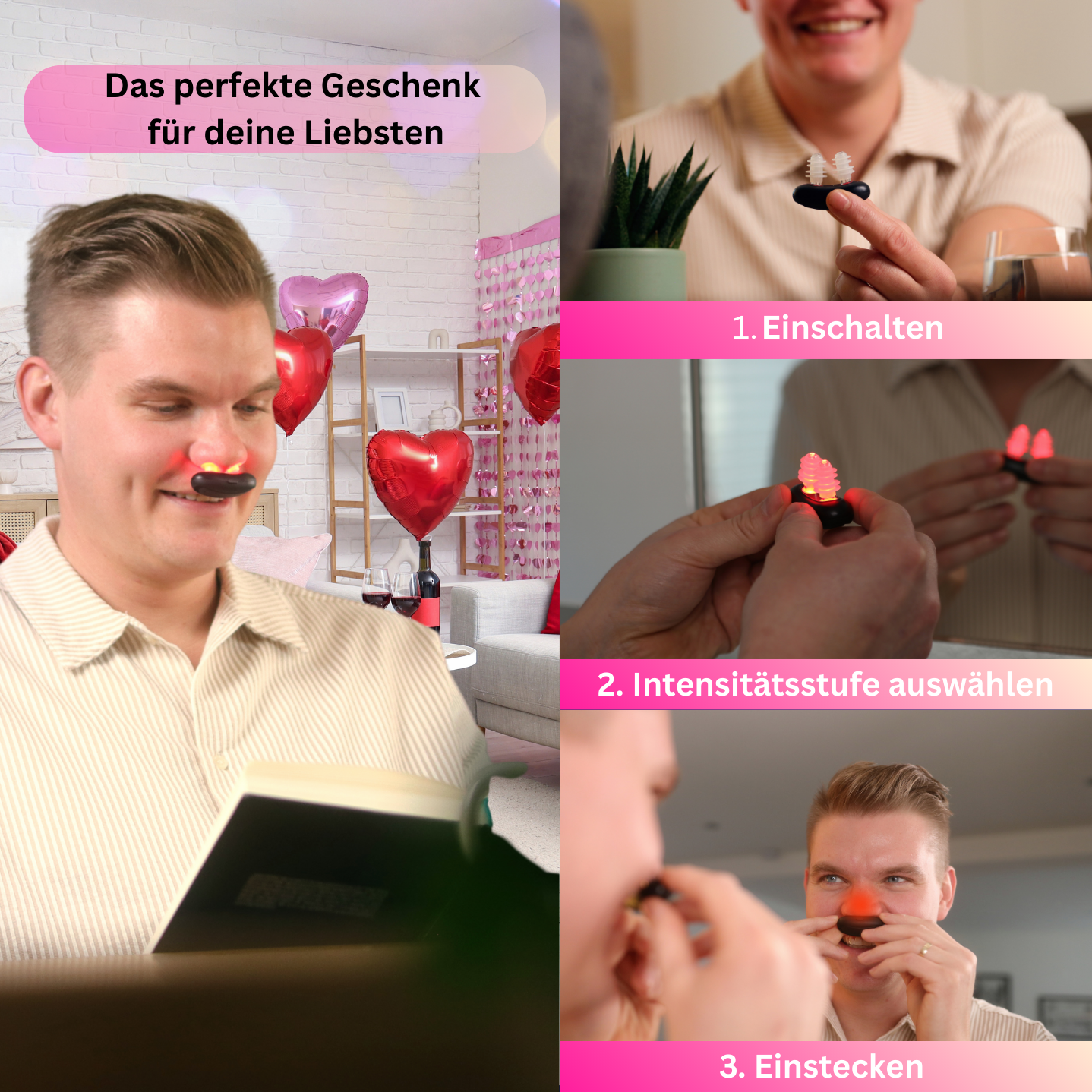 Es reicht bereits ein bis zweimal täglich für 10 Minuten aus. Wenn man abends ohne Nasenspray durchschlafen will, dann empfehlen wir es abends für 15 bis 20 Minuten anzuwenden.